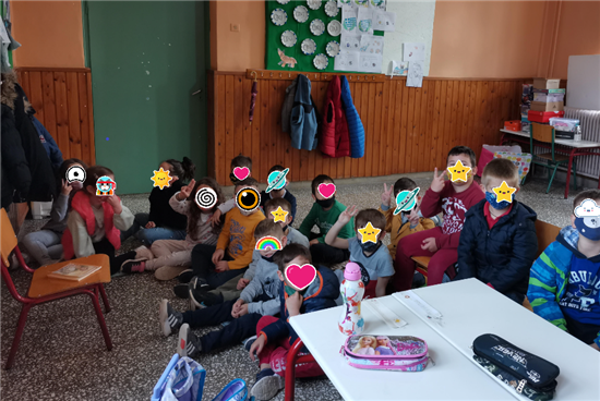 Έπειτα, η εκπαιδευτικός της τάξης διάβασε το βιβλίο «Το ραγισμένο κόκκινο αυγό» και ακολούθησε συζήτηση πάνω σε αυτό αλλά και παίξιμο διαφόρων παιχνιδιών (μνήμης και μουσικοκινητικά).