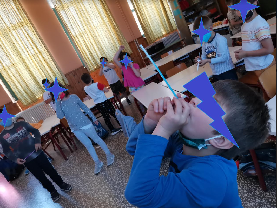 Χρησιμοποιώντας το ρολό από το χαρτί υγείας, οι μαθητές έφτιαξαν κιάλια, πυραύλους, ζωάκια. Επίσης, χρησιμοποιώντας αυγοθήκες για καβούκια, έφτιαξαν χελωνάκια καρέτα-καρέτα εμπνεόμενα από ένα μάθημα στο βιβλίο της Γλώσσας.
