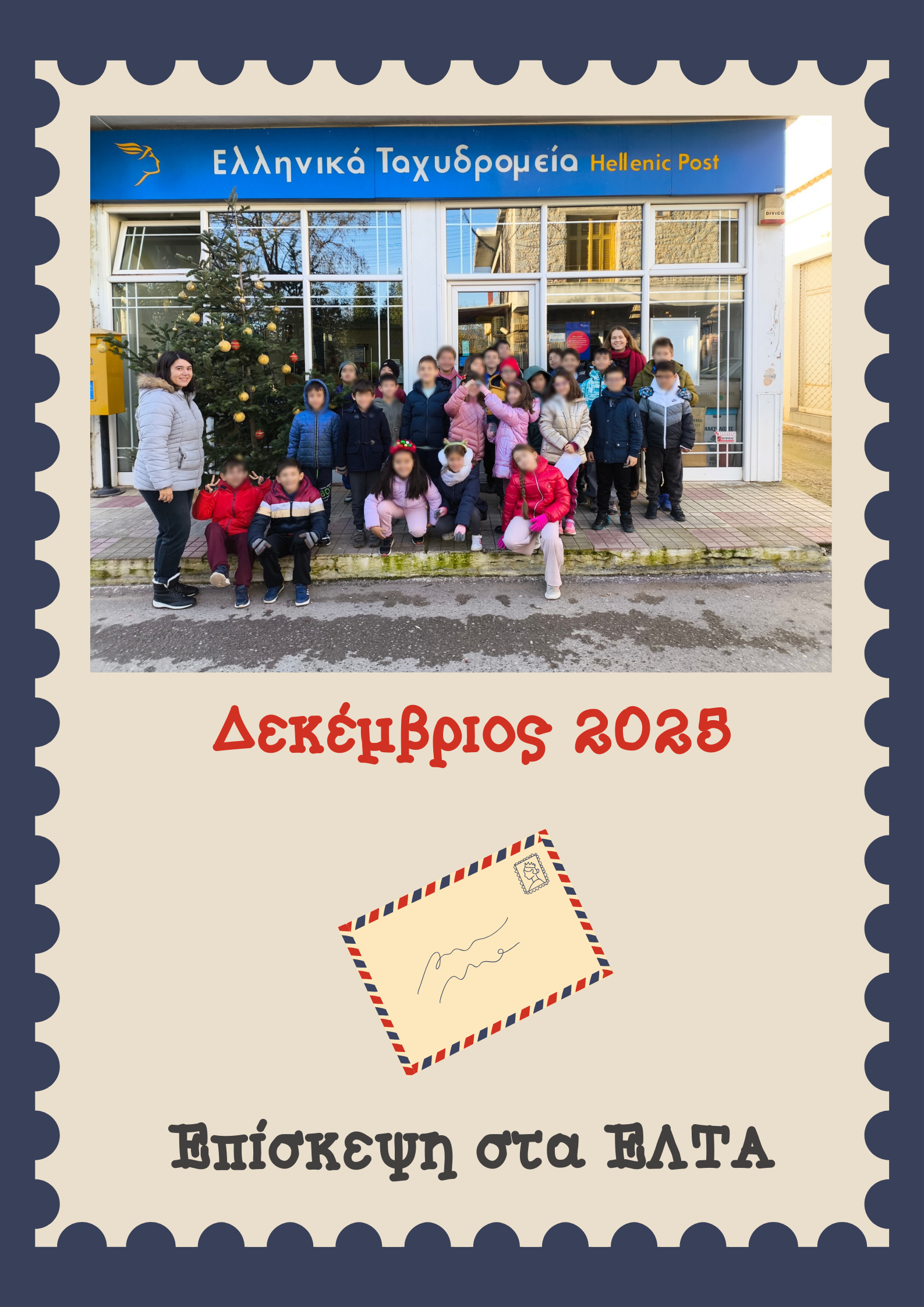 Οι μαθητές της Δ΄ τάξης επισκέφθηκαν τα Ελληνικά Ταχυδρομεία «ΕΛΤΑ» της Κάτω Τιθορέας και το κρεοπωλείο ΦΑΡΜΑ ΠΑΡΝΑΣΣΟΥ, προκειμένου να πάρουν συνέντευξη από τους υπαλλήλους και τους ιδιοκτήτες αντίστοιχα. Οι επισκέψεις πραγματοποιήθηκαν στα πλαίσια των εργαστηρίων δεξιοτήτων και της Δράσης Ενεργού Πολίτη που υλοποιείται για τη Δ’ τάξη, αμφότερα σχετικά με τα επαγγέλματα. Οι μαθητές είχαν την ευκαιρία να μάθουν πληροφορίες για το επάγγελμα, την εργασία, αλλά και τον τρόπο λειτουργίας τόσο για το ταχυδρομείο όσο και για το κρεοπωλείο. Μάλιστα, αναζήτησαν οι ίδιοι ενεργά τις πληροφορίες που τους ενδιέφεραν μέσα από την διαδικασία των συνεντεύξεων, τις ερωτήσεις των οποίων σκέφτηκαν, διατύπωσαν και οργάνωσαν οι ίδιοι σε ομάδες με την καθοδήγηση της εκπαιδευτικού. Επίσης, στο ταχυδρομείο παρακολούθησαν και τη διαδικασία αποστολής ενός φακέλου, καθώς η επίσκεψη πραγματοποιήθηκε από κοινού με τη Β’ τάξη, η οποία πραγματοποιεί αλληλογραφία με το Βούρειο Δημοτικό Σχολείο Λιβαδιών της Χίου.