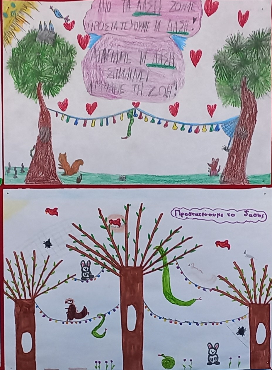 Οι μαθητές της Δ΄ τάξης μέσω του προγράμματος «Το δάσος γνωρίζω και μαθαίνω να φροντίζω», με το οποίο ασχολήθηκαν στα Εργαστήρια Δεξιοτήτων, έμαθαν για τη χλωρίδα και την πανίδα του δασικού οικοσυστήματος.