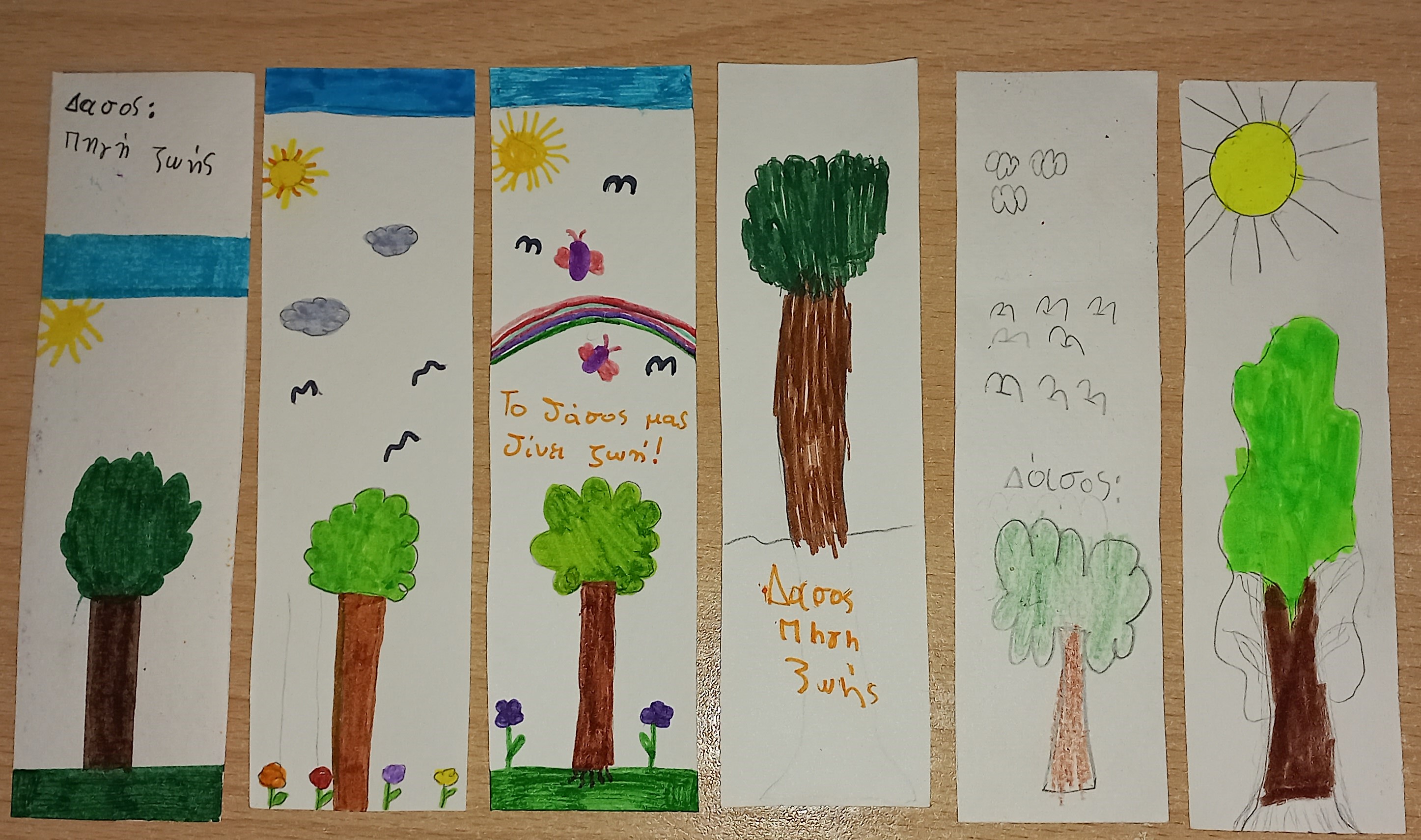 Τέλος, κατασκεύασαν σελιδοδείκτες με θέμα το δάσος και τη σημασία του για τη ζωή των ανθρώπων.
