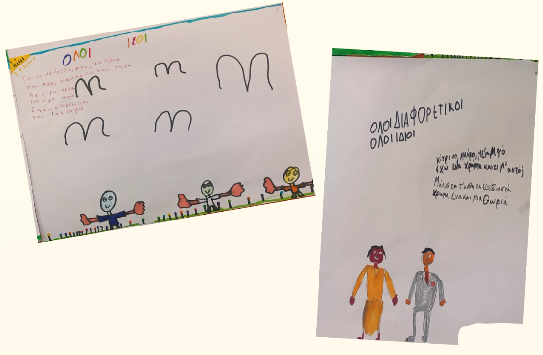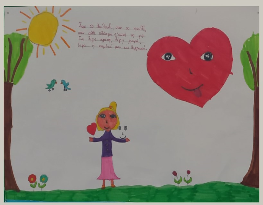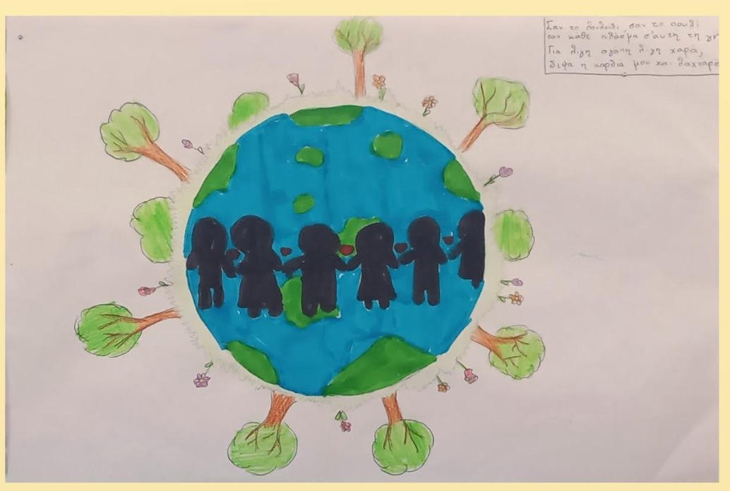 Στο μάθημα της Γλώσσας οι μαθητές διάβασαν και επεξεργάστηκαν το ποίημα «Όλου του κόσμου τα παιδιά» του Χάρη Σακελλαρίου. Βρήκαν τις πολλές εικόνες που χρησιμοποιεί ο ποιητής στο ποίημα και ζωγράφισαν όποια τους έκανε μεγαλύτερη εντύπωση.