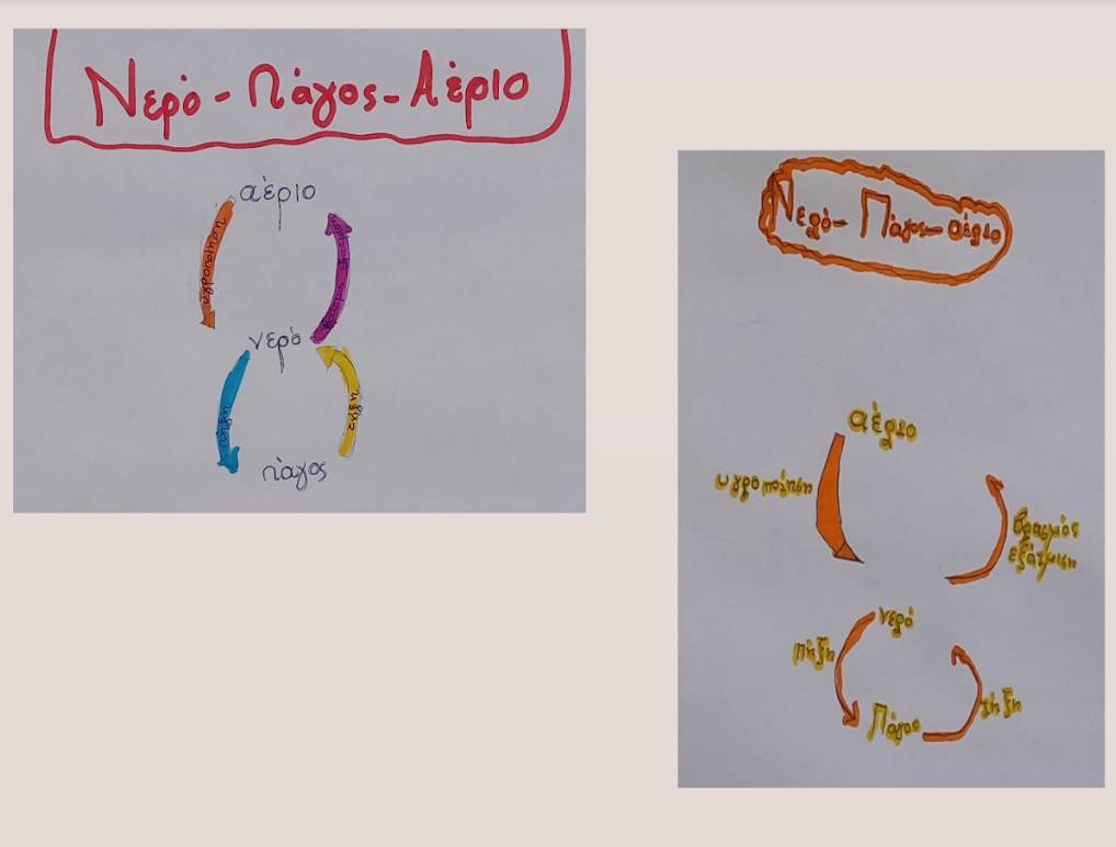 Επίσης, έμαθαν ότι το νερό ανακυκλώνεται μέσα από μια κυκλική διαδικασία (κύκλος του νερού).