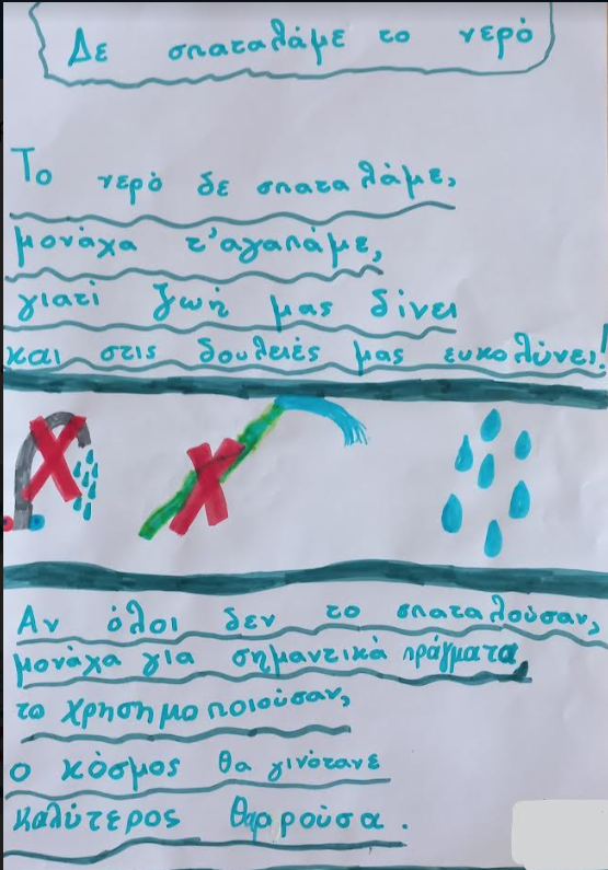 Τέλος, συνειδητοποίησαν τα προβλήματα που μπορεί να προκύψουν από την έλλειψη του νερού και βρήκαν τρόπους εξοικονόμησης του νερού που μπορούν να εφαρμόσουν στην καθημερινή τους ζωή.