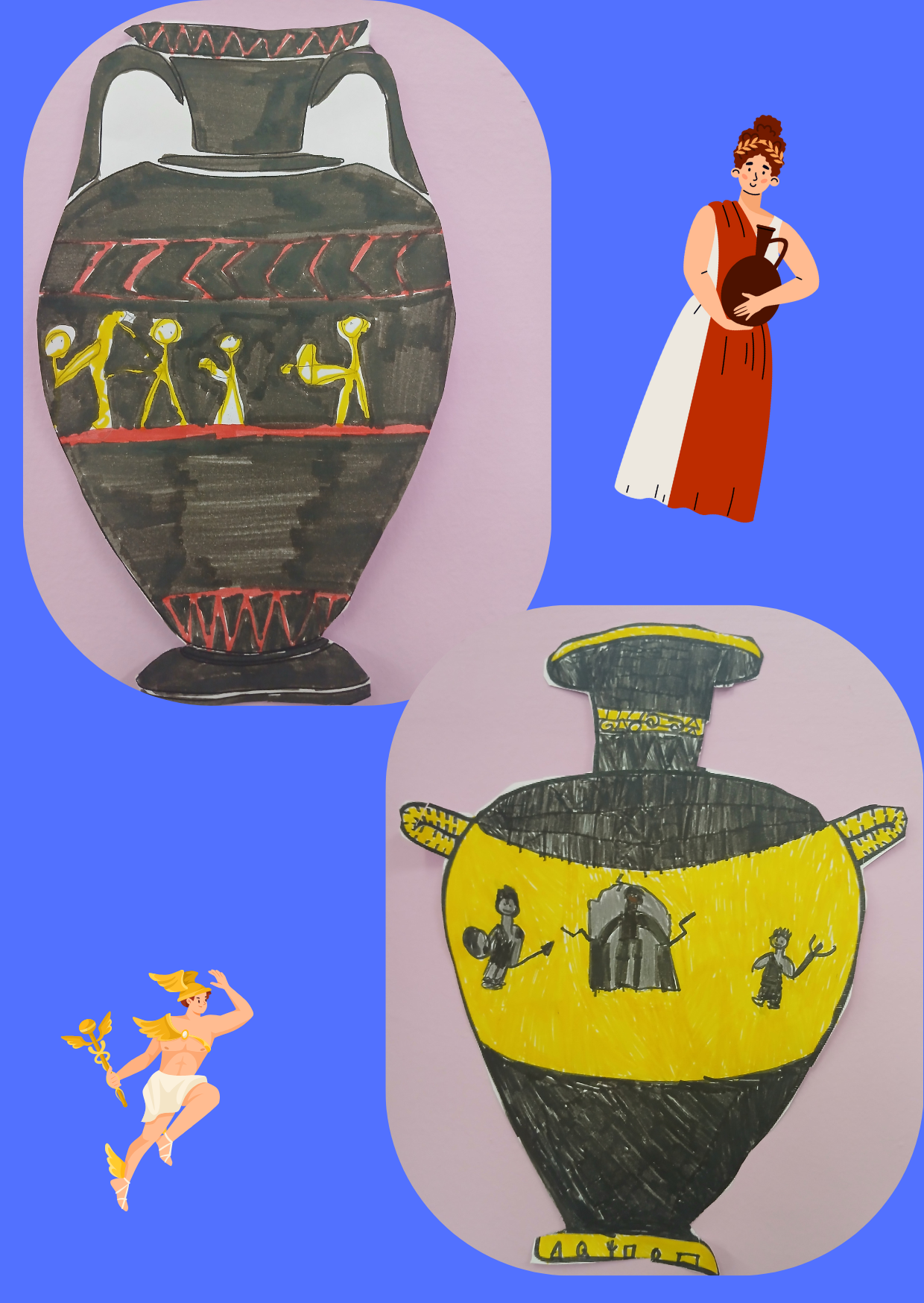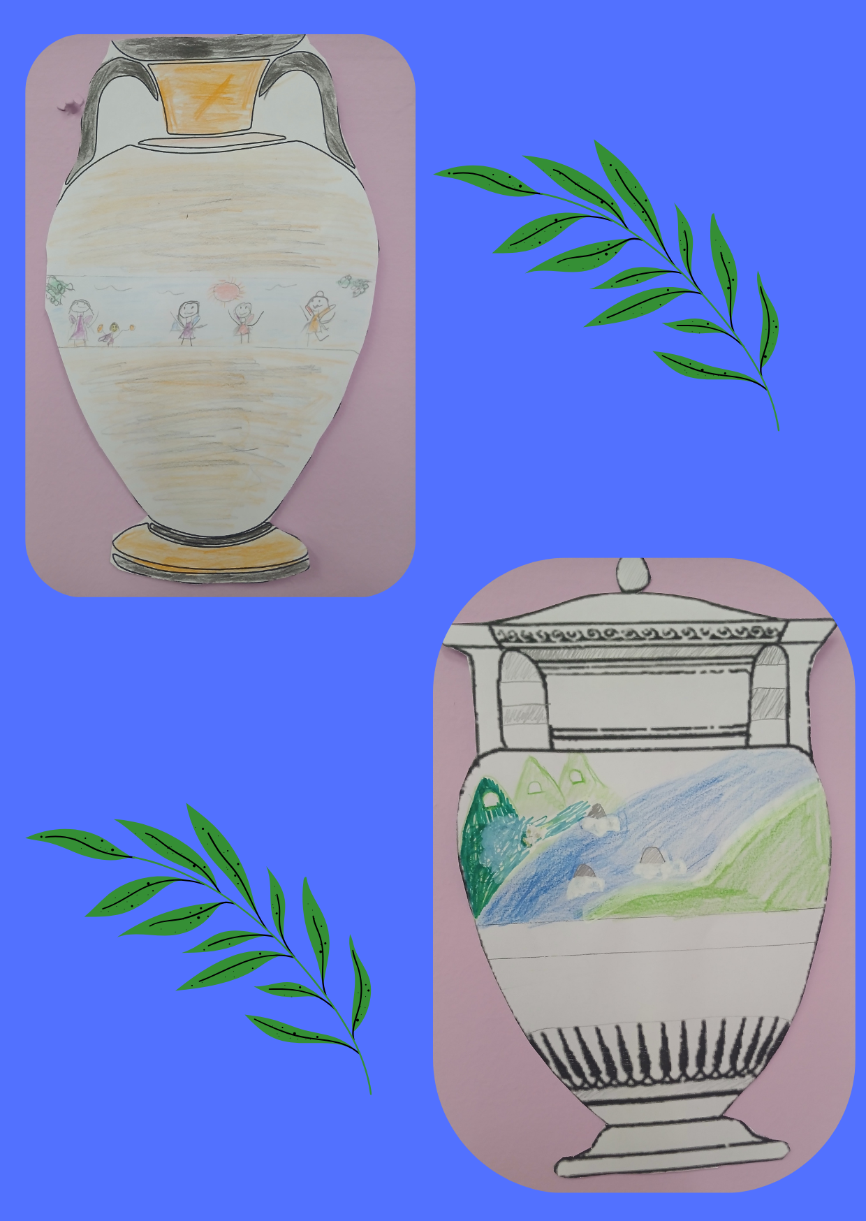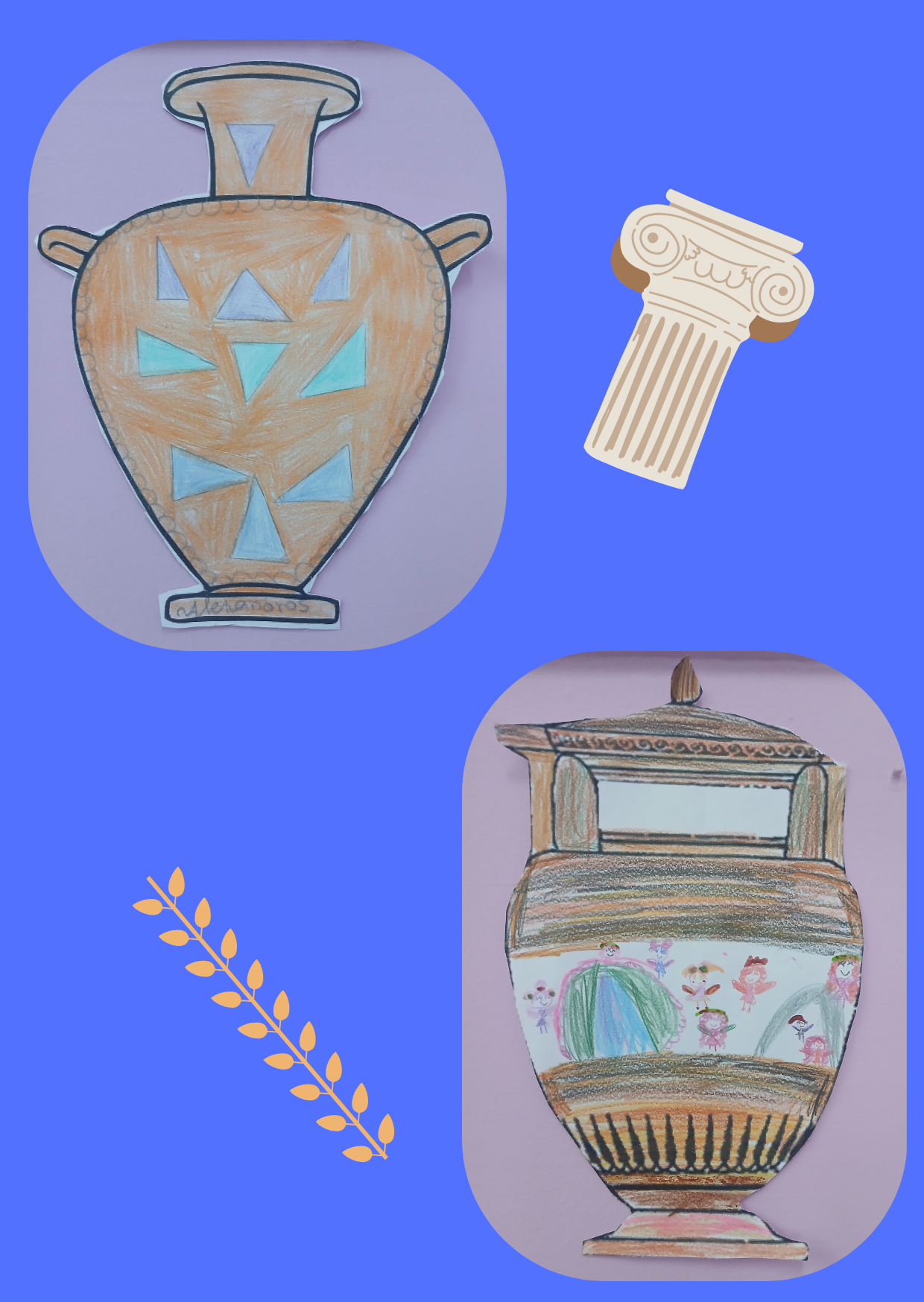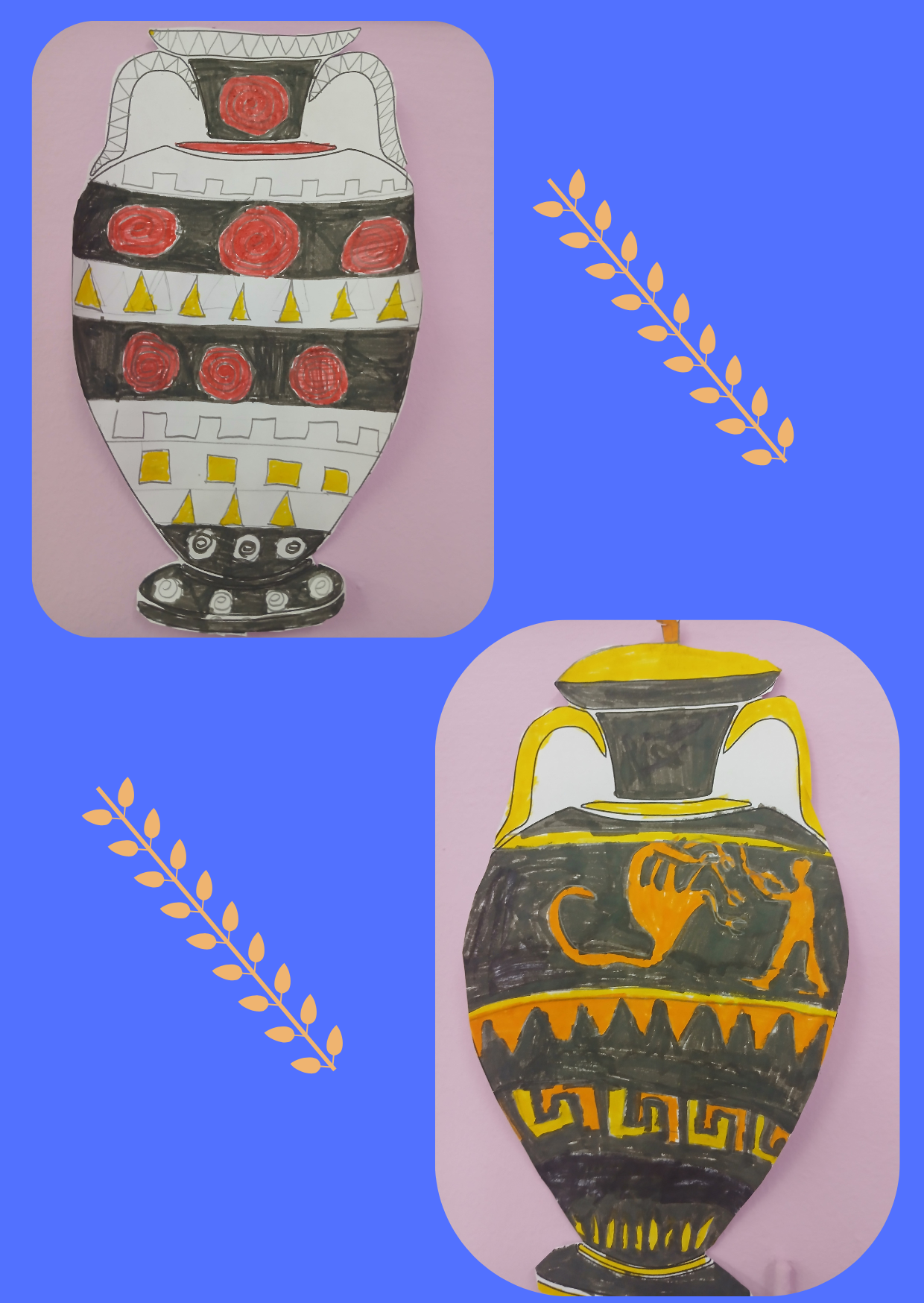 Την ώρα των εικαστικών οι μαθητές της Δ΄Τάξης φιλοτέχνησαν τα δικά τους αγγεία. Στο μάθημα της Ιστορίας μάθανε για την αγγειοπλαστική στην Αρχαία Ελλάδα.