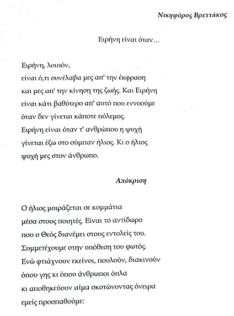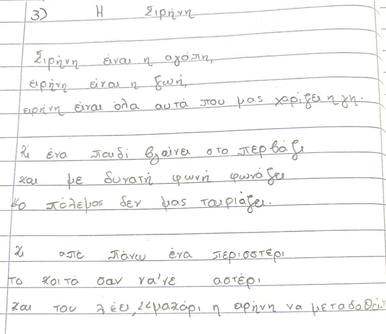 Έτσι, ταξίδεψαν ως την τάξη μας οι στίχοι του Καβάφη, του Ελύτη, του Λειβαδίτη, του Παλαμά, του Σεφέρη, κι άλλων, κυρίως Ελλήνων ποιητών. Τελευταίος επισκέπτης μας, ο Ναζίμ Χικμέτ που μας θύμισε, πριν τη μετάβασή μας στο γυμνάσιο, ότι "η καλύτερη θάλασσα είναι αυτή που δεν έχουμε ακόμα ταξιδέψει...