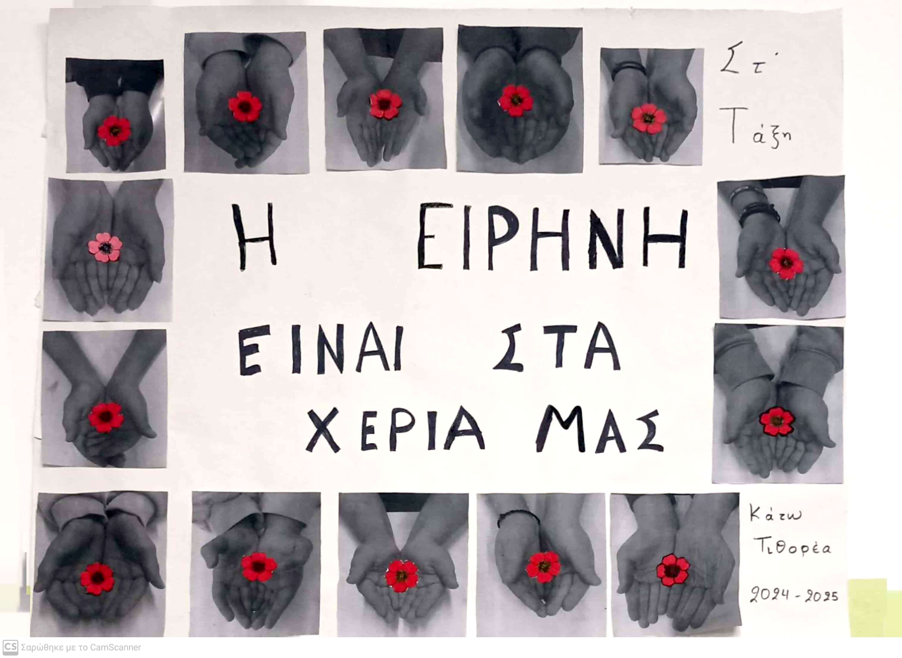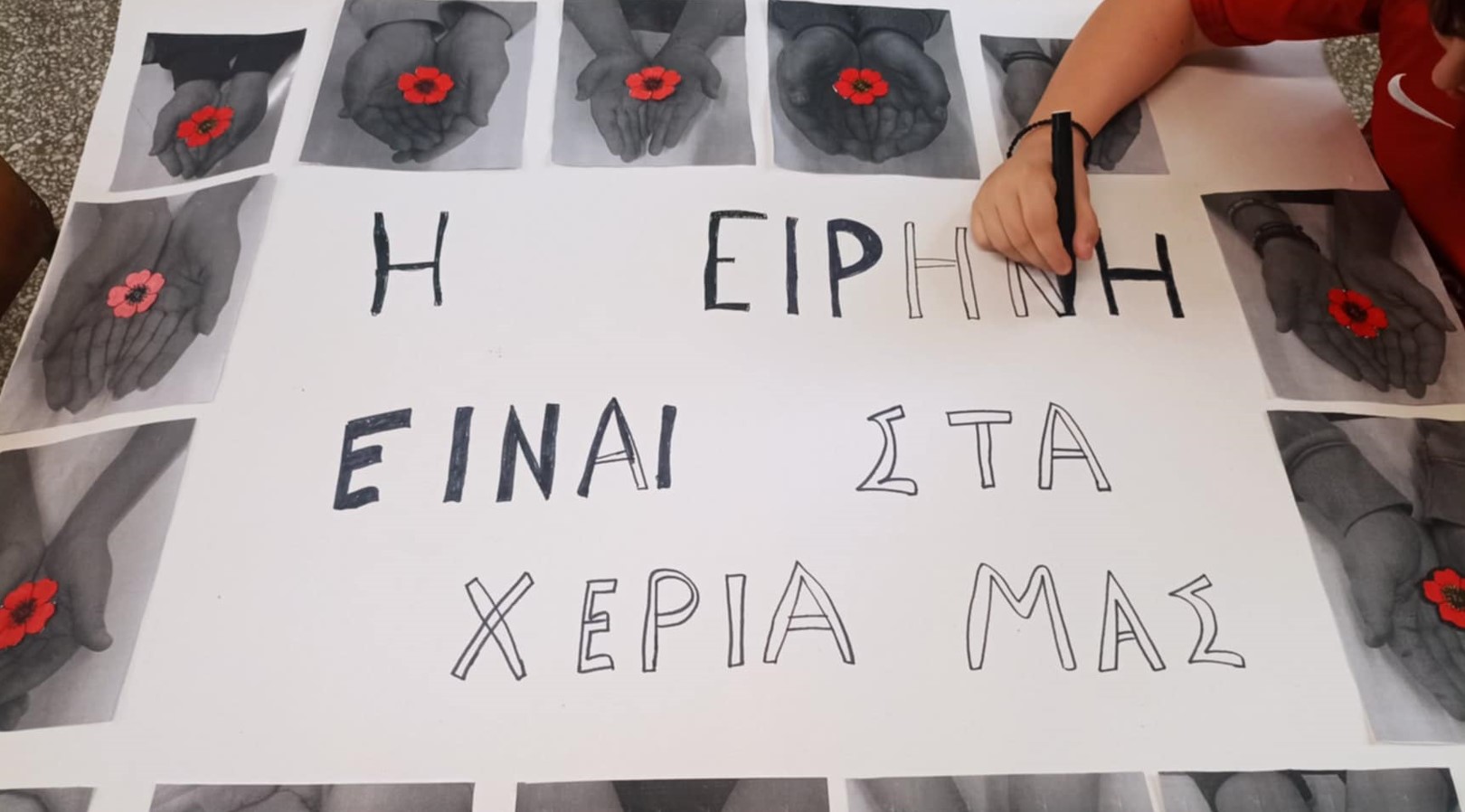 Έπειτα, τα παιδιά παρακολούθησαν συγκεντρωτικά βίντεο με τα γεγονότα του Πολυτεχνείου και διάβασαν διάφορα σχετικά κείμενα, όπως αποσπάσματα από λογοτεχνικά βιβλία, άρθρα σε εφημερίδες της εποχής, αλλά και μαρτυρίες. Στη συνέχεια, έγραψαν τη δική τους περιγραφή της νύχτας της 16ης προς 17ης Νοεμβρίου μέσα από την οπτική του οδηγού του τανκ, της φοιτήτριας, του κατοίκου της Αθήνας ή της δημοσιογράφου. Στο τέλος, δημιούργησαν μία αφίσα με σύνθημα: Η ΕΙΡΗΝΗ ΕΙΝΑΙ ΣΤΑ ΧΕΡΙΑ ΜΑΣ, στο οποίο κόλλησαν φωτογραφίες των χεριών τους να κρατάνε μία παπαρούνα, ως σύμβολο ειρήνης.
