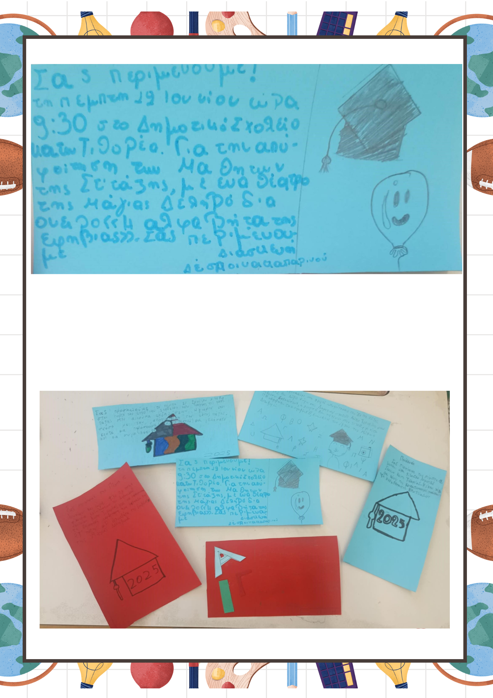 Οι μαθητές/ριες της έκτης δημιούργησαν τις δικές τους προσκλήσεις για τη γιορτή αποφοίτησής τους, στις 12 Ιουνίου, 2025.