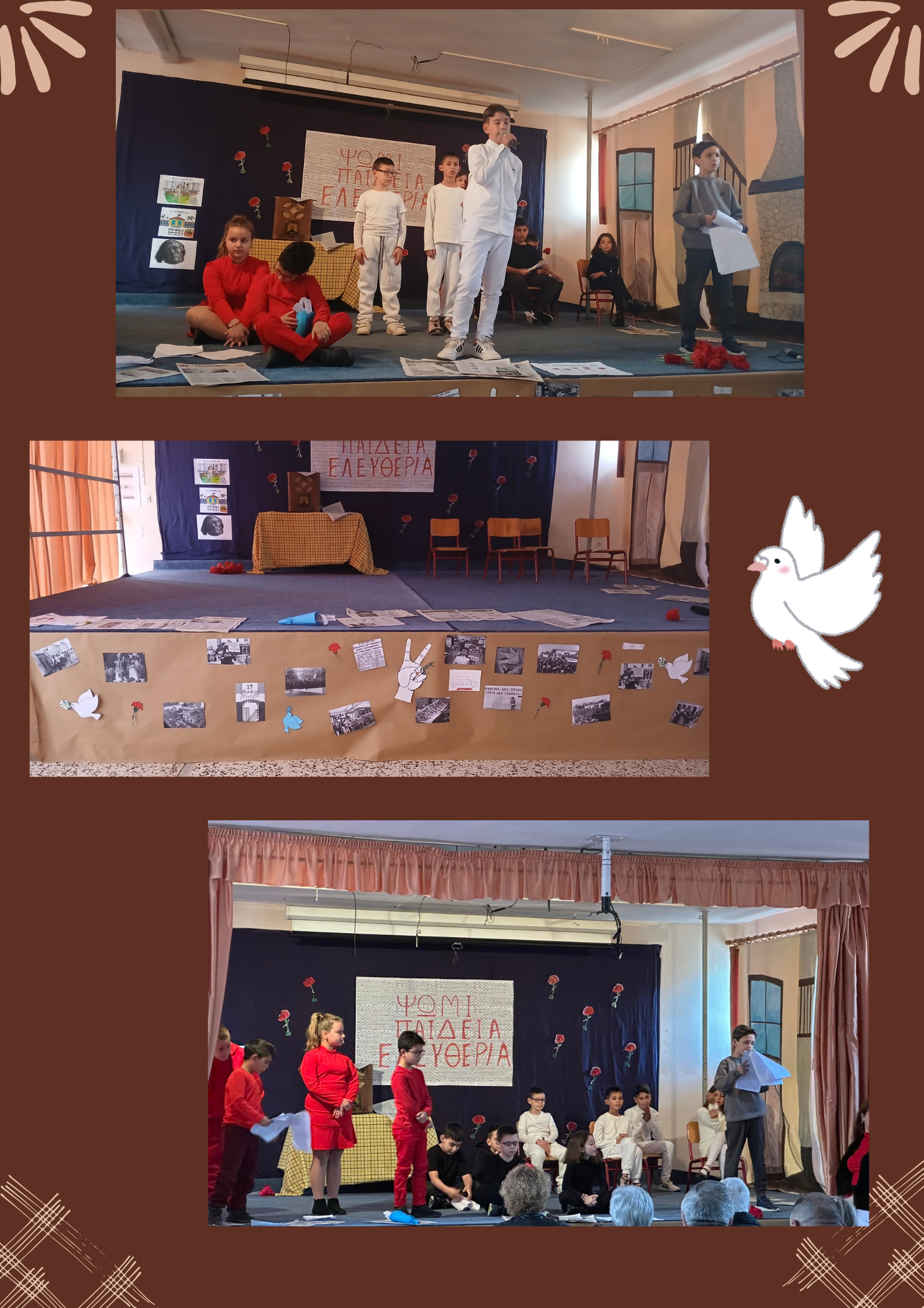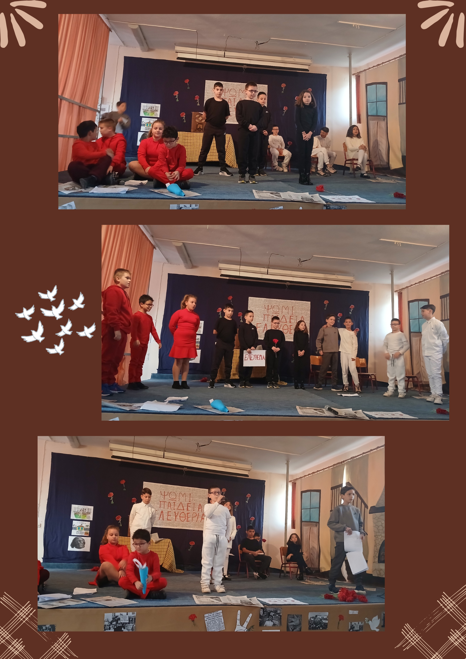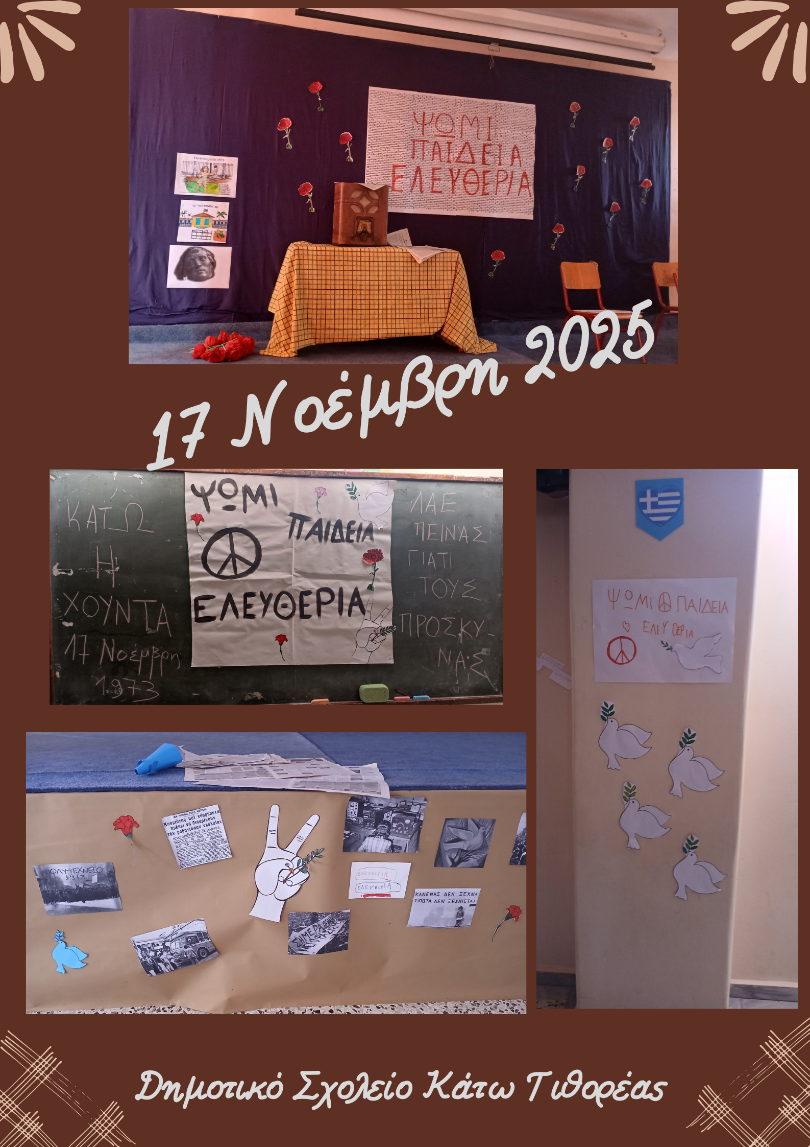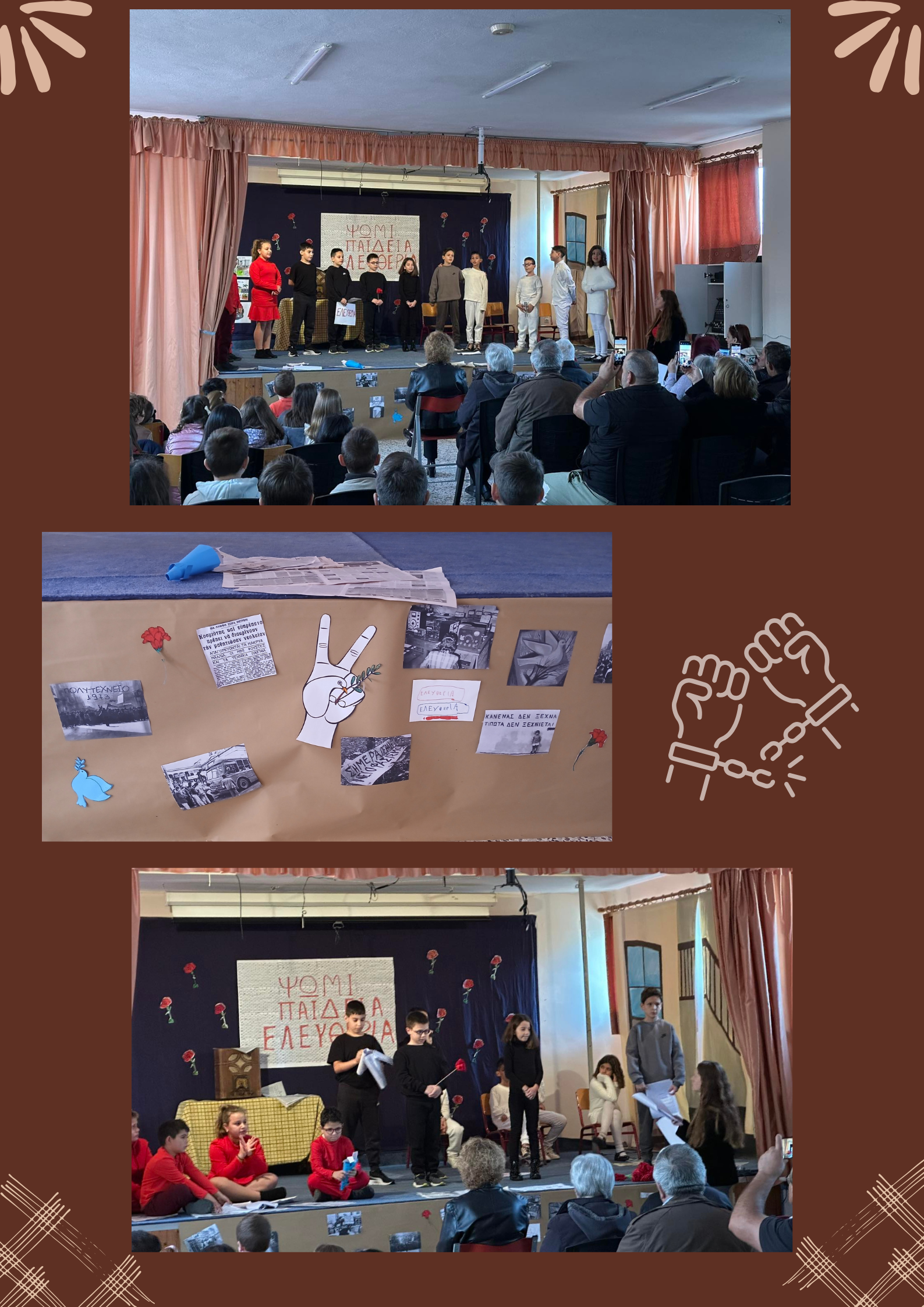 Στο σχολείο μας τη Δευτέρα 17 Νοέμβρη 2025, πραγματοποιήθηκε η γιορτή του Πολυτεχνείου αποδίδοντας τιμές σ’ αυτούς που ύψωσαν το ανάστημά τους απέναντι στο καθεστώς της δικτατορίας και διεκδίκησαν ελευθερία, δικαιοσύνη και αξιοπρέπεια για όλους.