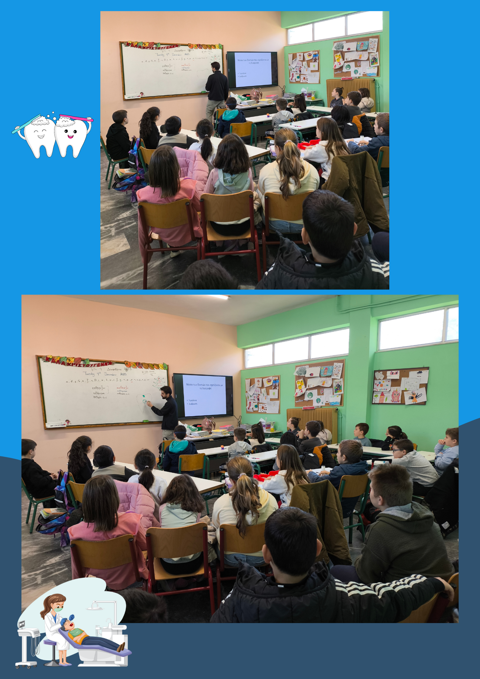 Τη δράση παρακολούθησαν οι μαθητές και οι μαθήτριες των Α΄, Β΄, Γ΄ και Δ΄ τάξεων, οι οποίοι/ες ενημερώθηκαν με τρόπο κατανοητό και ενδιαφέρον για τη σωστή φροντίδα των δοντιών και τη σημασία της στοματικής υγείας στην καθημερινή ζωή.