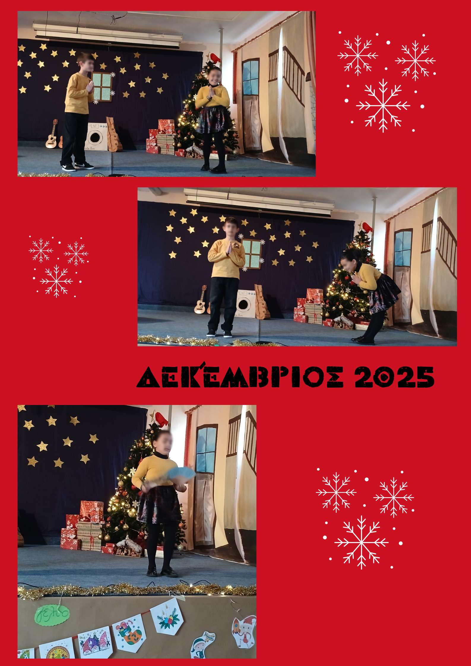 Μέσα σε κλίμα γιορτινής χαράς πραγματοποιήθηκε την Τρίτη 23 Δεκεμβρίου 2025, η χριστουγεννιάτικη εκδήλωση του σχολείου μας! Οι μικροί μαθητές της Α΄ και Β΄ Τάξης έκλεψαν τις εντυπώσεις, μεταφέροντάς μας στη μαγεία των εορτών με τον δικό τους μοναδικό τρόπο.