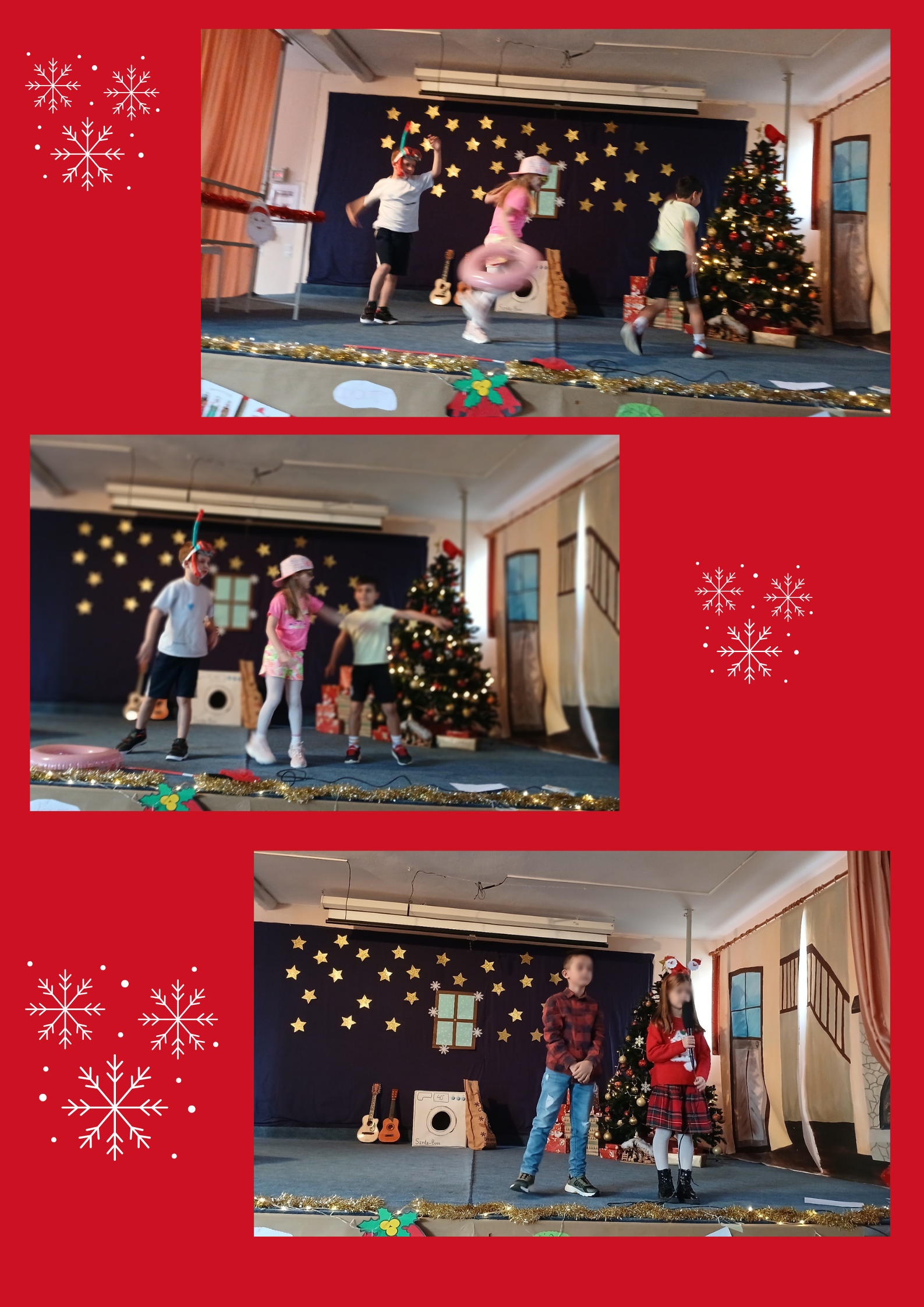 Η γιορτή συνεχίστηκε με μελωδικά χριστουγεννιάτικα τραγούδια, τα οποία ερμήνευσαν οι μαθητές, γεμίζοντας την αίθουσα με φωνές και γιορτινή διάθεση.